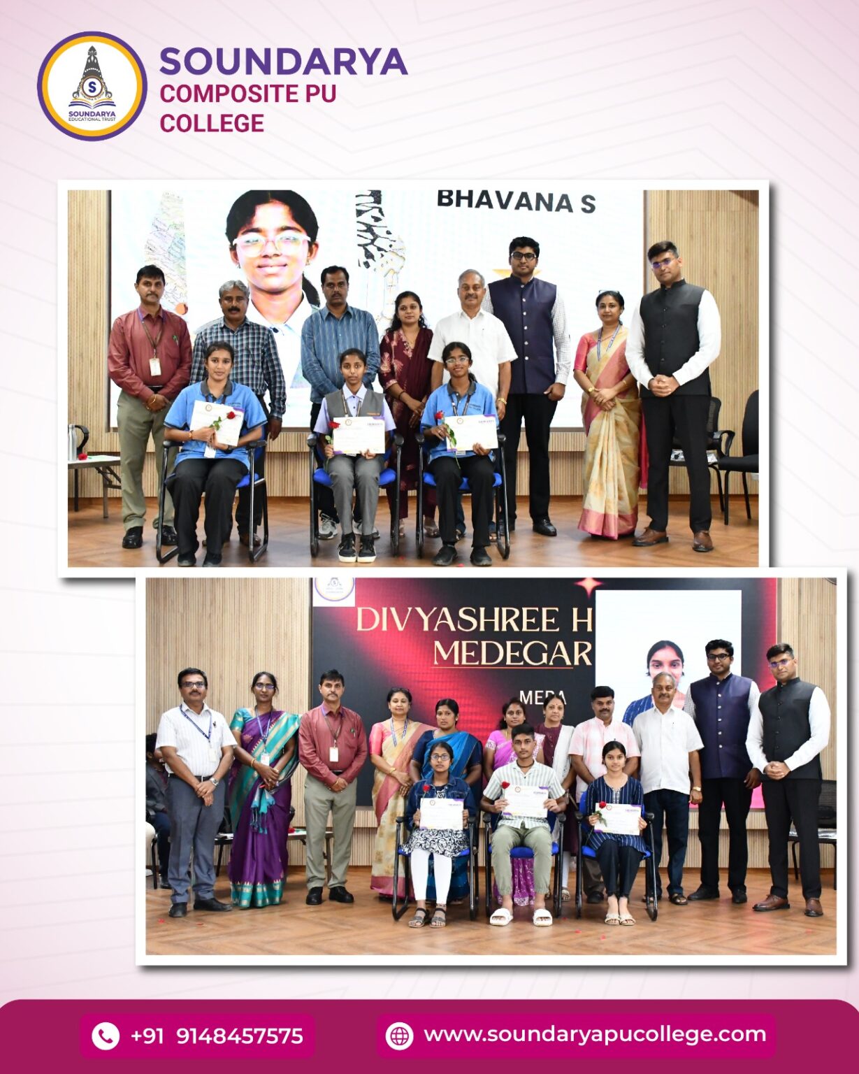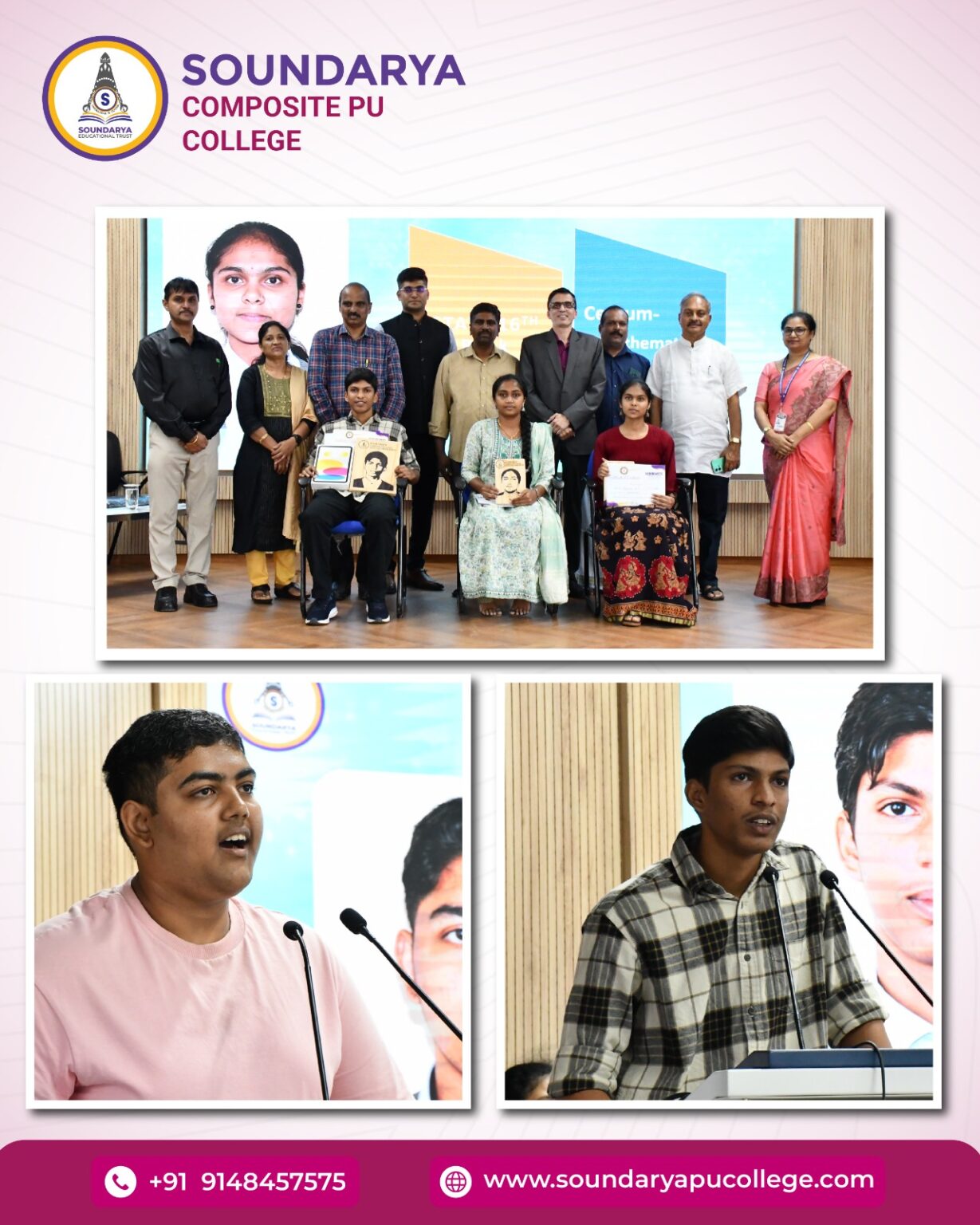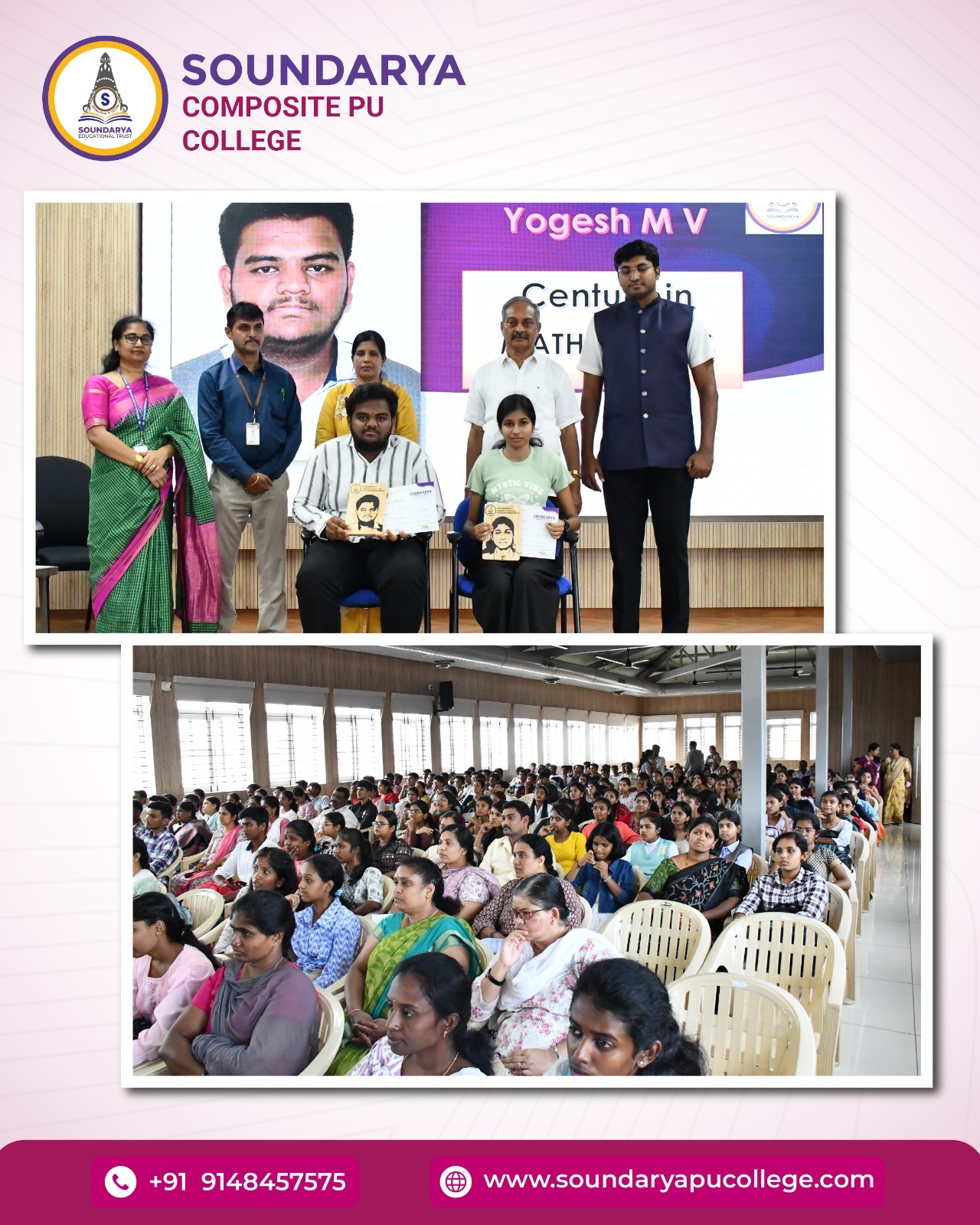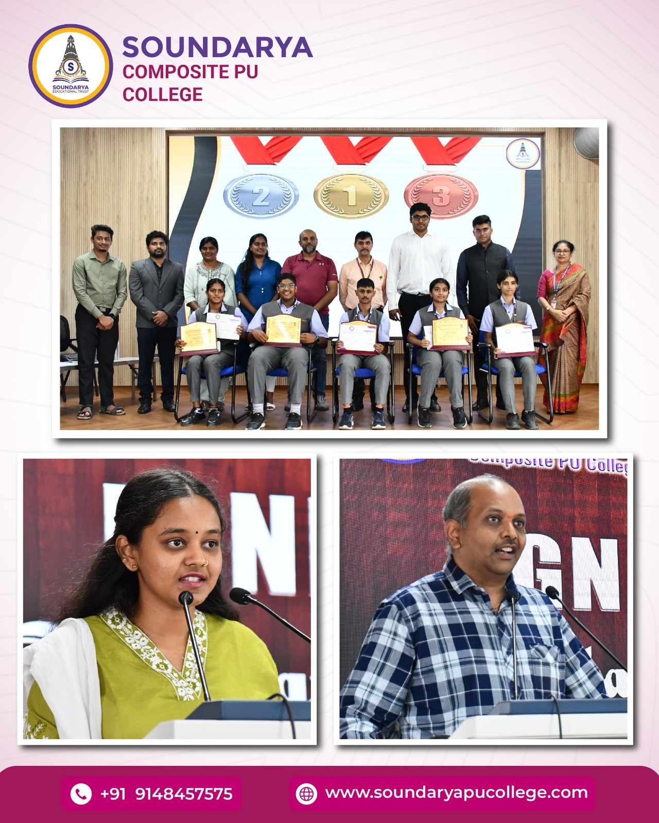 The IGNITE 2K25 Orientation Program at Soundarya Composite PU College began on an inspiring note as the institution welcomed parents and students of the incoming First PU batch. A highlight of the event was the felicitation of the Chief guest Mr. Ravindra Varna, Vice President – Engineering Delivery Head at India Development Center, Relevance Lab, for his remarkable contributions to the field of technology and education. He was honoured by Mr. Soundarya P. Manjappa, Founder of Soundarya Educational Trust, and Mr. Keerthan Kumar, CEO, Soundarya Group of institutions.