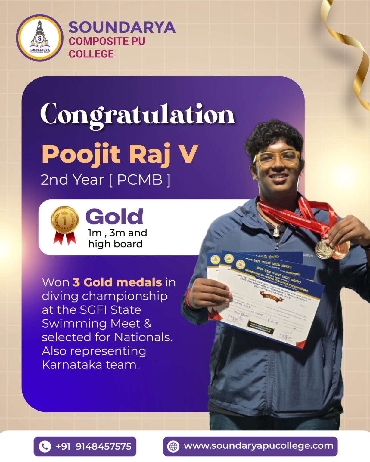 Poojit Raj V Won 3 medals at the SGFI State Swimming Meet