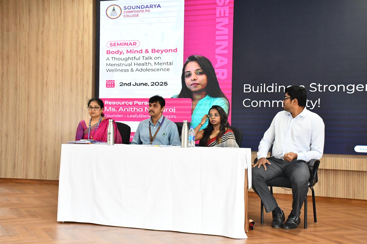 In observance of promoting adolescent well-being, Soundarya Composite PU College organized a thought-provoking seminar titled “Body, Mind & Beyond”– a powerful initiative aimed at empowering young minds through education on menstrual health, mental wellness, and adolescence.