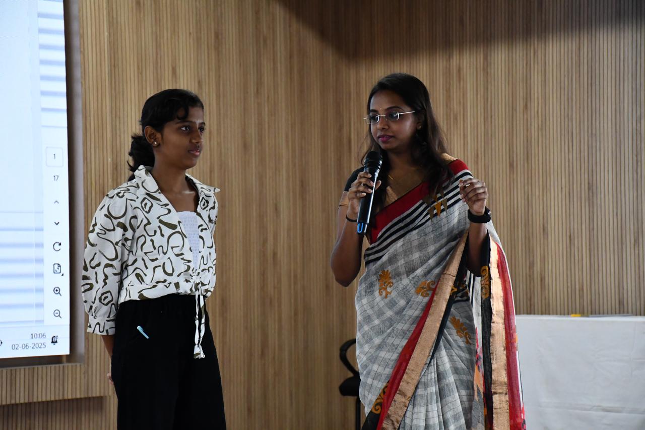 We were honored to welcome Ms. Anitha Nagaraj,Founder of LeafyBlend Concepts,as the esteemed resource person. With her multifaceted background as a social worker, NLP practitioner, and menstrual hygiene educator,she engaged students in an open and insightful dialogue around topics often considered sensitive yet essential.