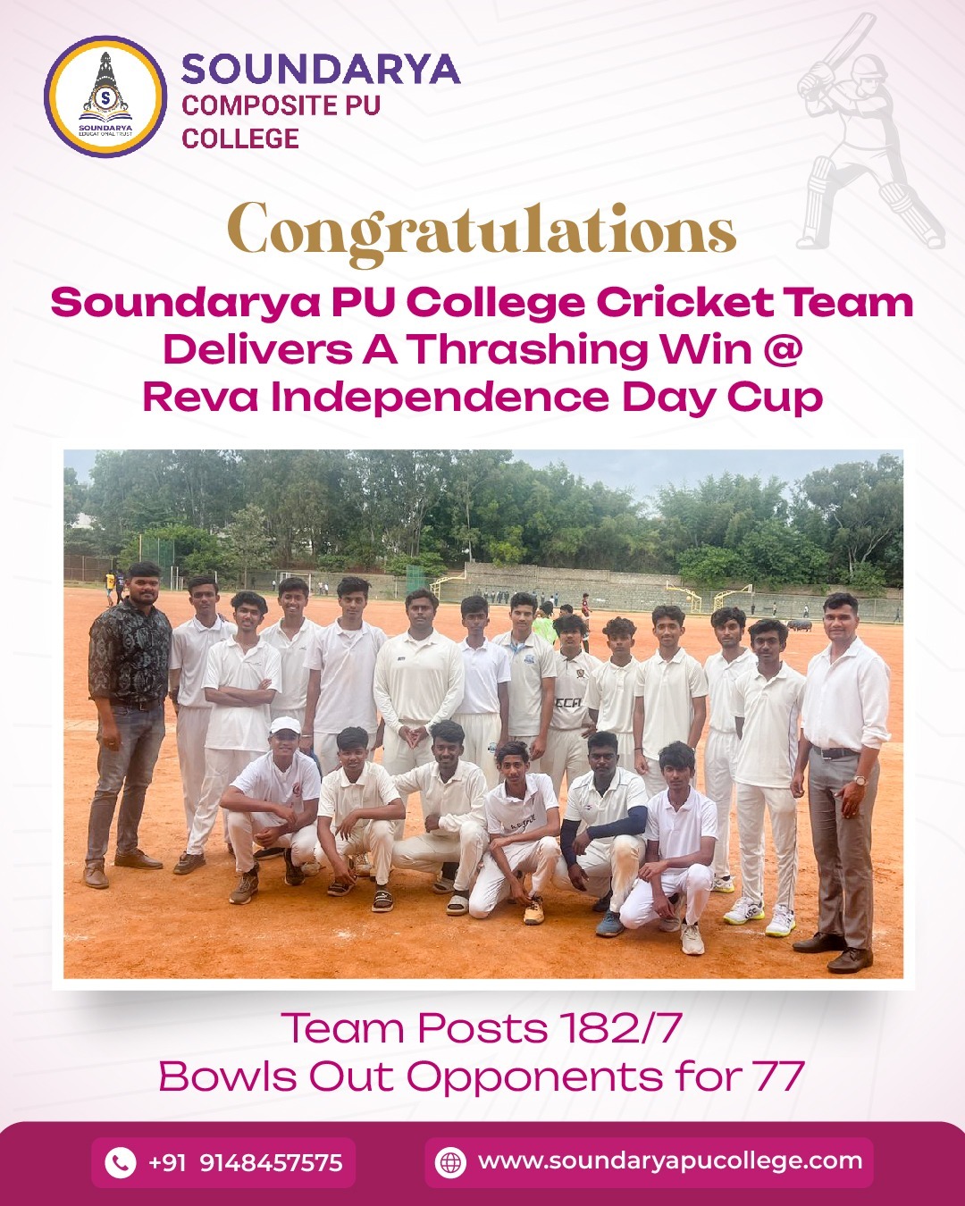 #SoundaryaPUCollege #CricketVictory #RevaCup2025 #TeamSoundarya #StudentChampions #PUCollegeCricket #Sportsmanship #VictoryCelebration